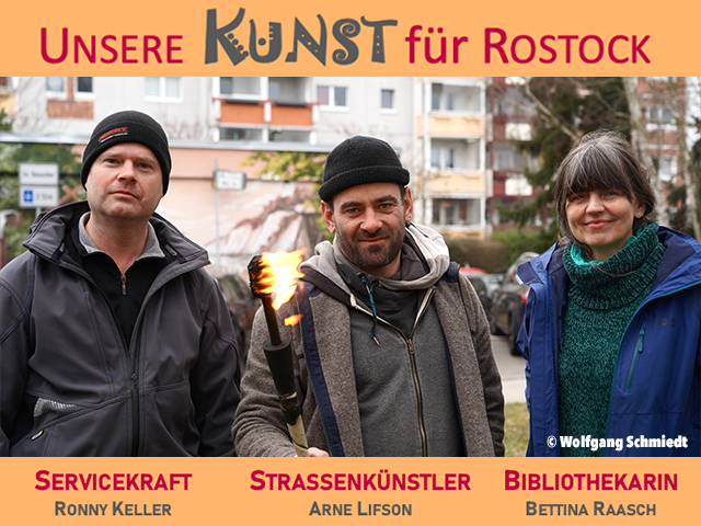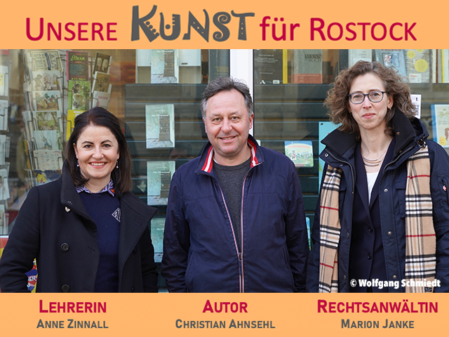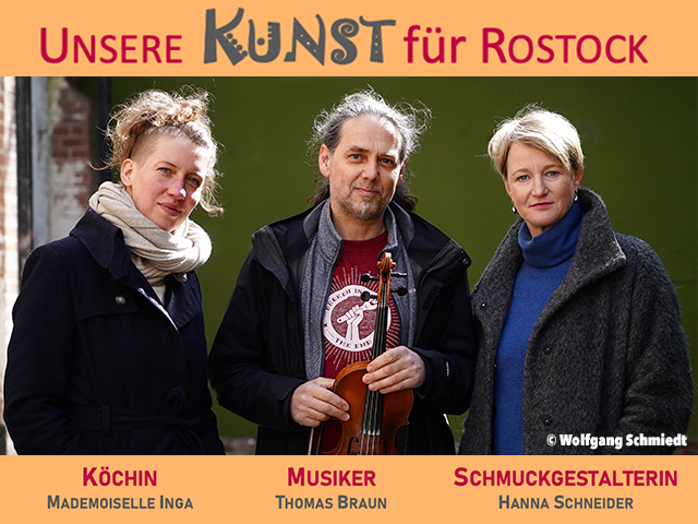 Unter diesem Motto haben wir gemeinsam mit Wolfgang Schmiedt und Jacqueline Boulanger eine Aktion für alle Rostocker ins Leben gerufen: „Unsere KUNST für Rostock.“