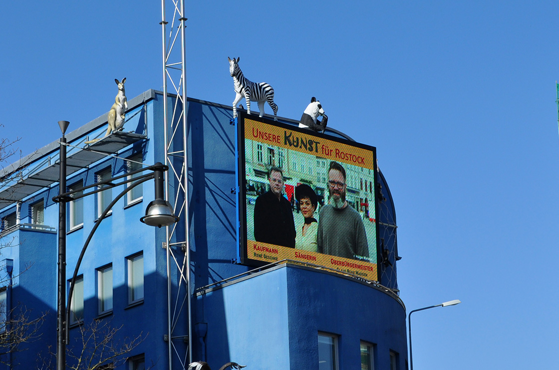 Seit dem 03. März 2021 ist auf der digitalen LED.WAND am blauen Haus (PLAKATDIGITAL, Strandstr. 106, 18055 Rostock) diese „Hommage“ für alle KÜNSTLER/INNEN dieser wunderschönen STADT zu sehen!